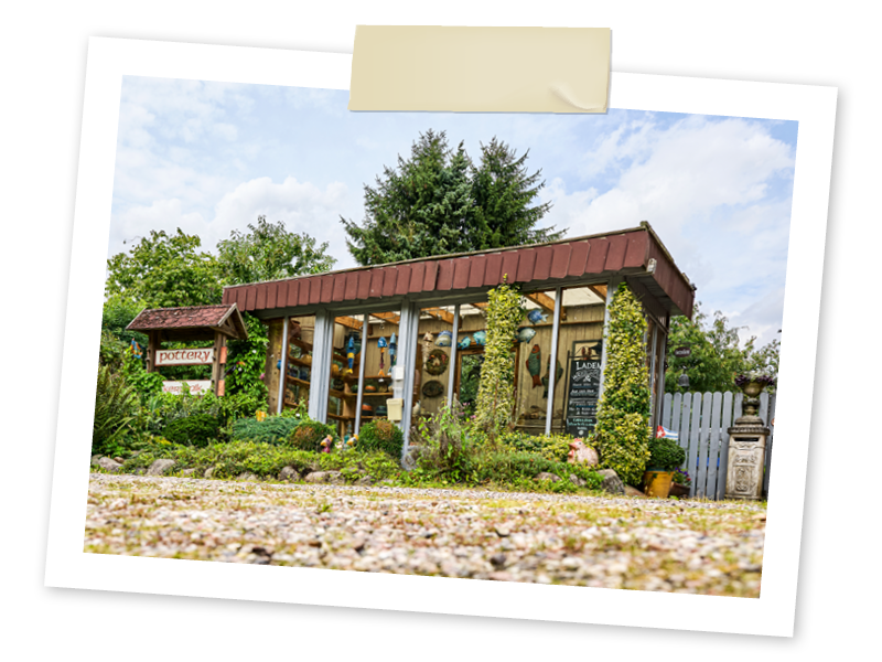 200 Meter von der Haltestelle Lensterbek Ost liegt Cornelia Scheefelds idyllisch gelegenes Atelier Pottery. Sie gestaltet und verkauft vor allem Keramik, ist aber ein wahres Multitalent: „Ich habe noch das Druckhandwerk so gelernt, wie es nach Gutenberg jahrhundertelang ausgeübt wurde.“ Später kam noch Grafikdesign dazu, bevor sie sich 1982 als Künstlerin in Cismar niederließ.