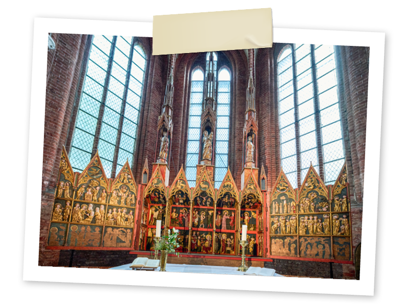 Im Kloster Cismar weht uns der Hauch der (Kunst-)Geschichte an. Im Mittelalter kamen die Pilger, um über (unechte) Reliquien wie einen Blutstropfen Christi oder über die heilige Johannisquelle zu staunen. Heute stehen wir in der Klosterkirche vor dem (echten) holzgeschnitzten Altar aus dem frühen 14. Jahrhundert, einem der bedeutendsten Flügelaltäre der Welt.