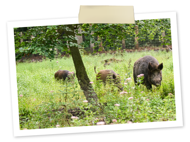 Kurz vor Kellenhusen biegen wir gegenüber vom Waldparkplatz an der Waldstraße zum Wildschweingehege ab. Wir müssen ein bisschen suchen, aber dann entdecken wir die ganze Rotte. Mit etwas Glück lassen sich auch noch im Herbst die niedlichen gestreiften und gepunkteten Frischlinge beobachten, die aufgeregt durchs Gestrüpp laufen.