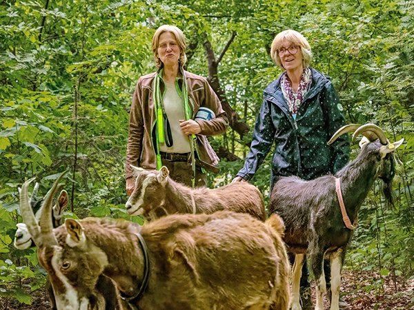 Nicht wundern sollte sich, wer im Langenberger Forst im nordwestlichen Schleswig-Holstein auf Wanderer trifft, die gemächlich von Ziegen begleitet werden. Ganz sicher mit dabei ist Musikpädagogin Bettina Kramp. Sie bietet Ziegentrekking mit Thüringer Waldziegen an. Ziegen zählen zu den ältesten Begleitern der Menschen. Sie sind genauso neugierig wie selbstbewusst – und so lassen sie sich gar nicht erst in das entspannte Tempo der Touren hineinreden. Gern kann man zur Wanderung ein Picknick hinzubuchen.