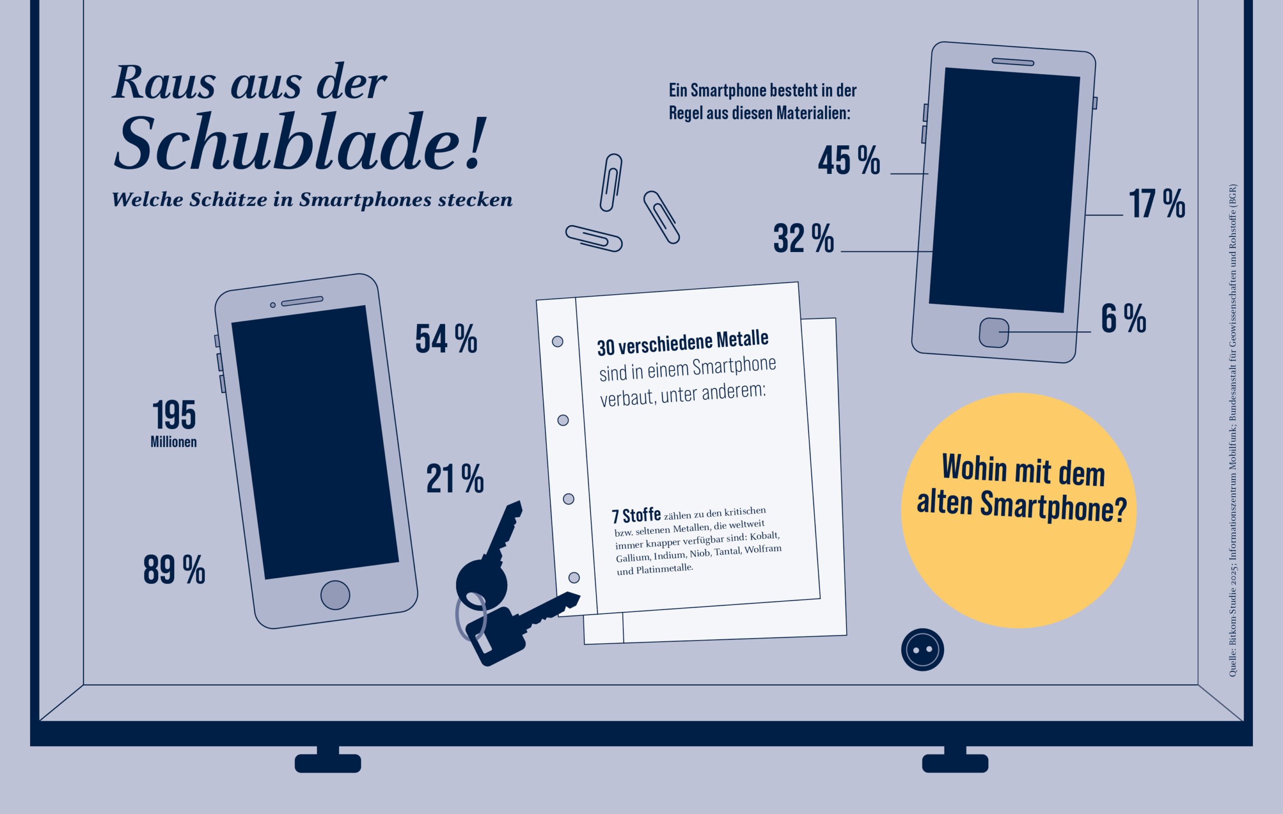 der Deutschen ab 16 Jahren haben mindestens 1 ungenutztes Handy oder Smartphone zu Hause liegen.